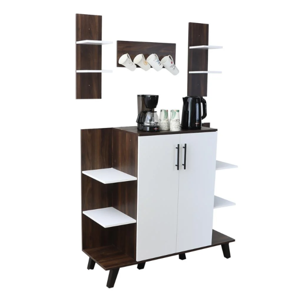 المنتج يأتي كطقم كامل يشمل ركن قهوة ورفوف معلقة، ويعتبر خيارًا مثاليًا لإضافة ركن قهوة مميز في المنزل يجمع بين العملية والجمال.