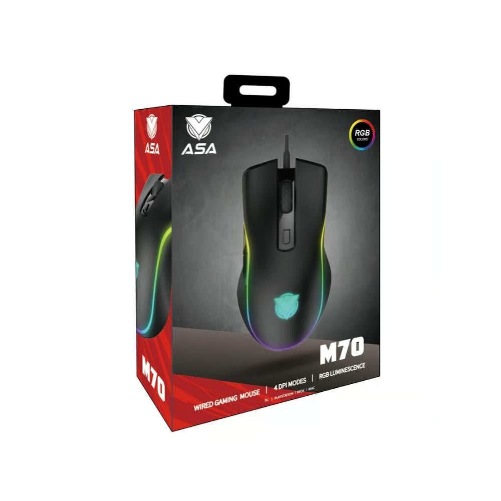 ماوس الألعاب ASA M70 يجمع بين الأداء العالي والتصميم العصري بإضاءة RGB جذابة.